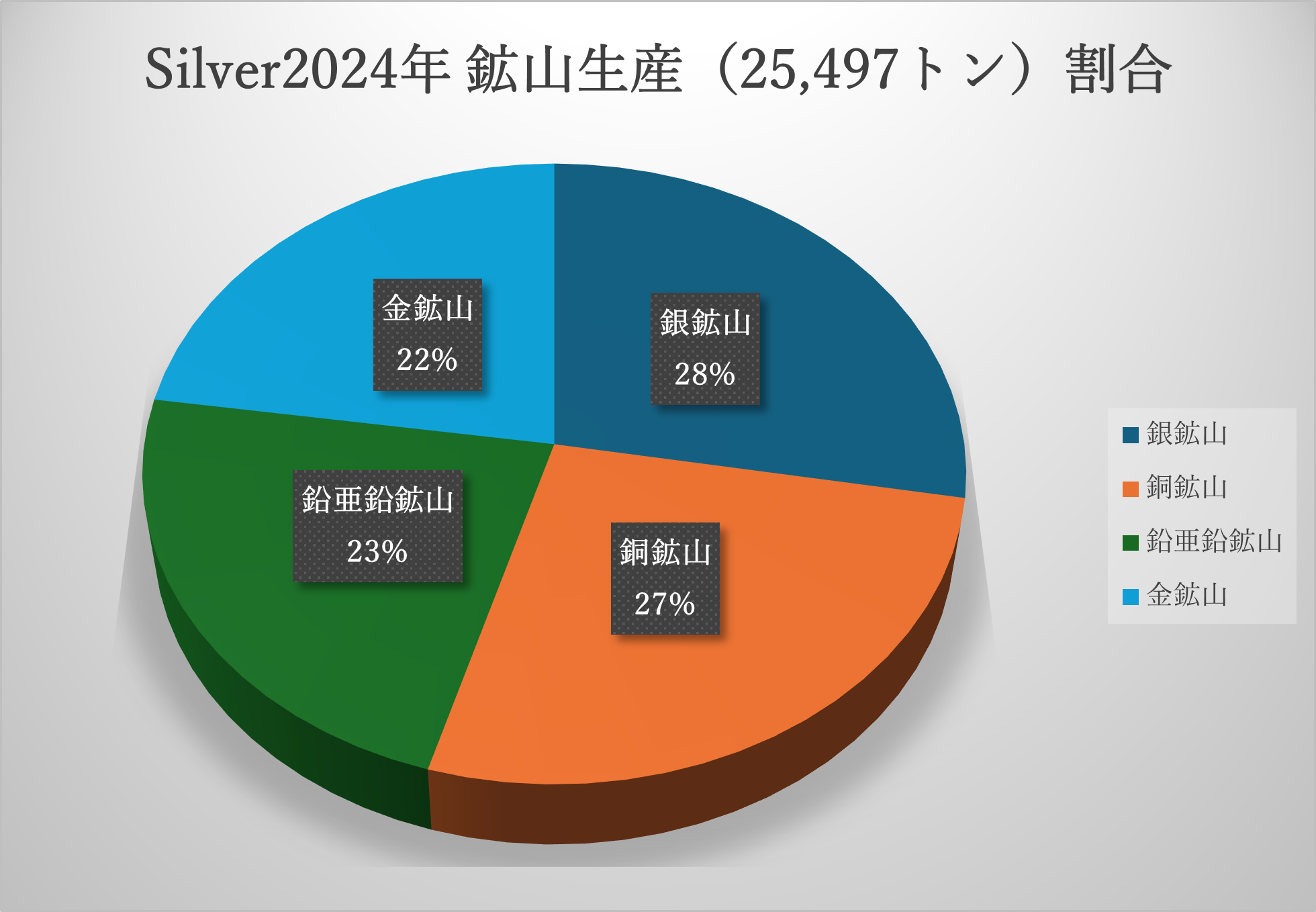 しかしシルバーの鉱山生産に関してはこれよりも大事なポイントがあります。というのもシルバーの鉱山生産で、実際「シルバー鉱山」からの生産は28%なのです。残りは銅鉱山から28%、鉛亜鉛鉱山から23%、金鉱山から22%といった具合に、他の鉱山から「副産物」として生産されているのです。
