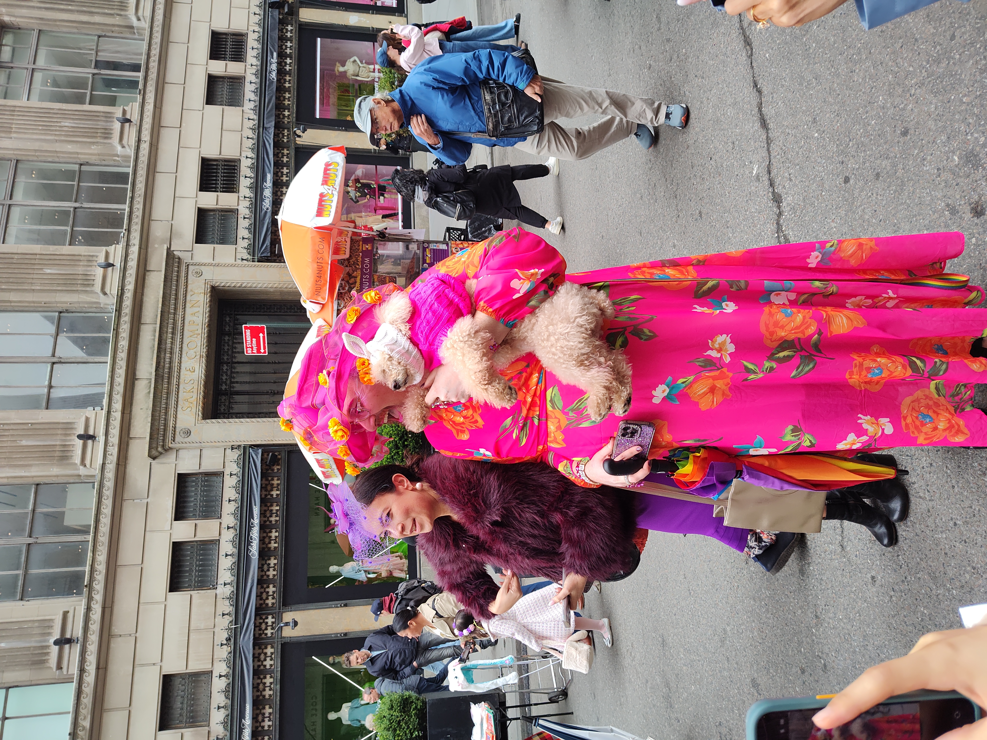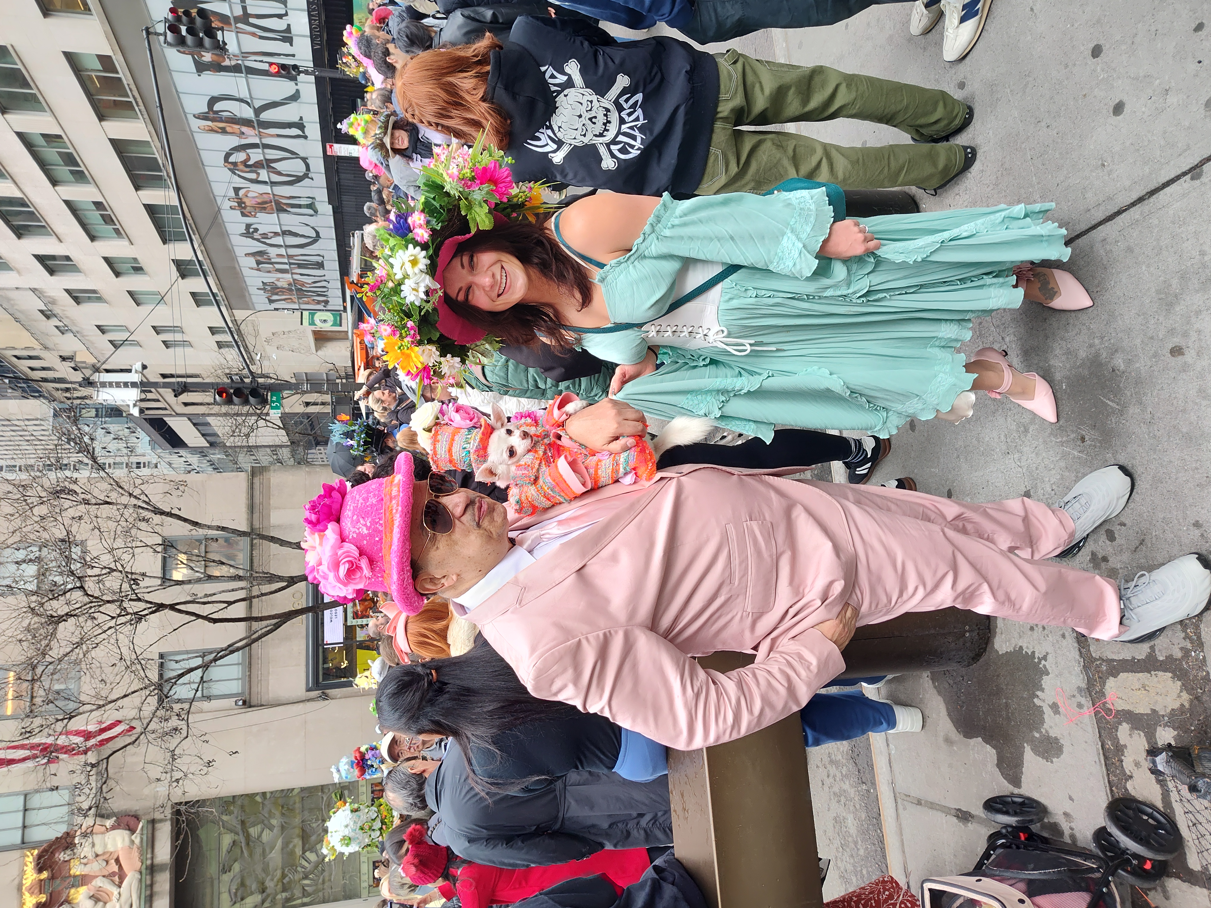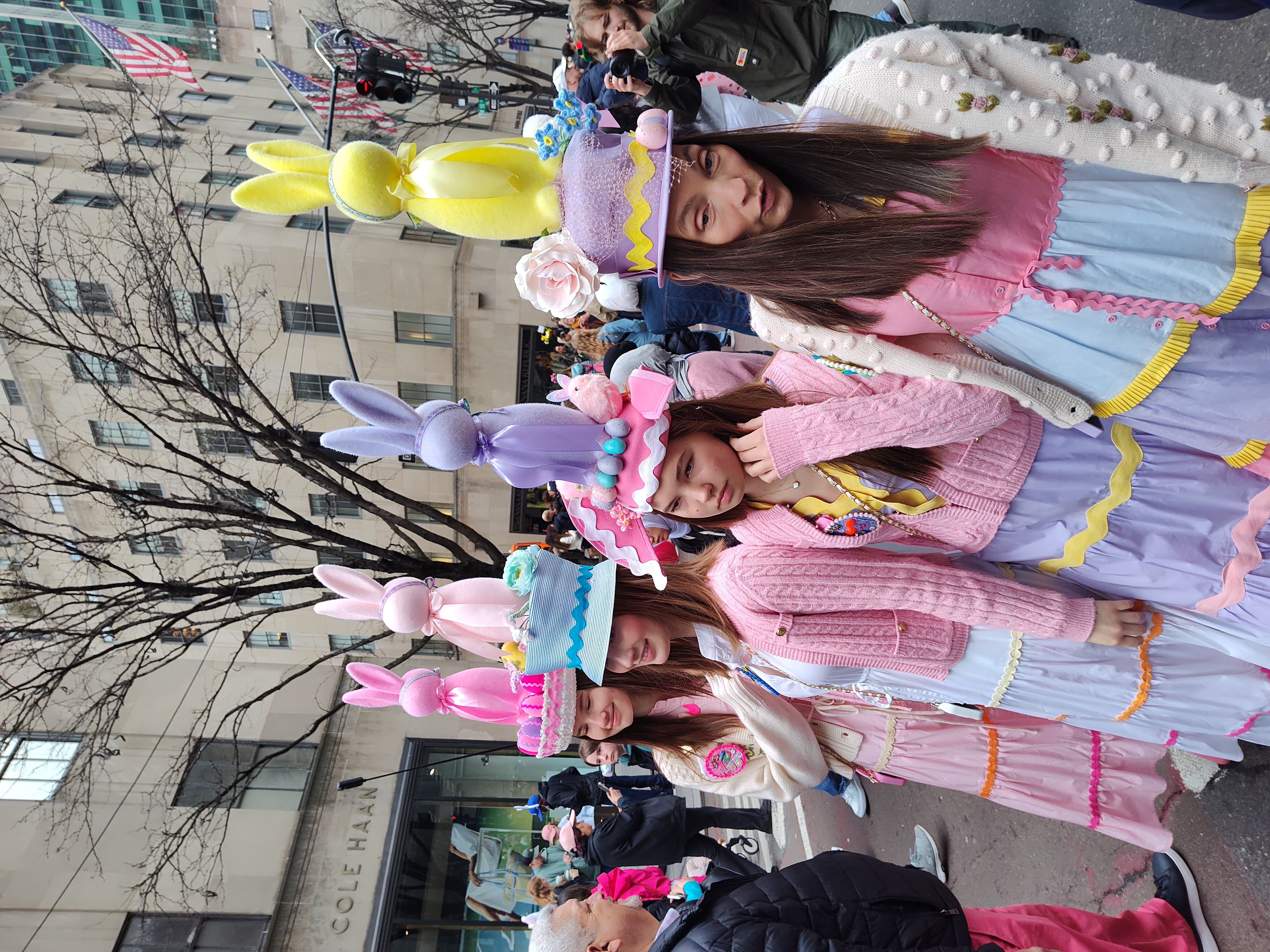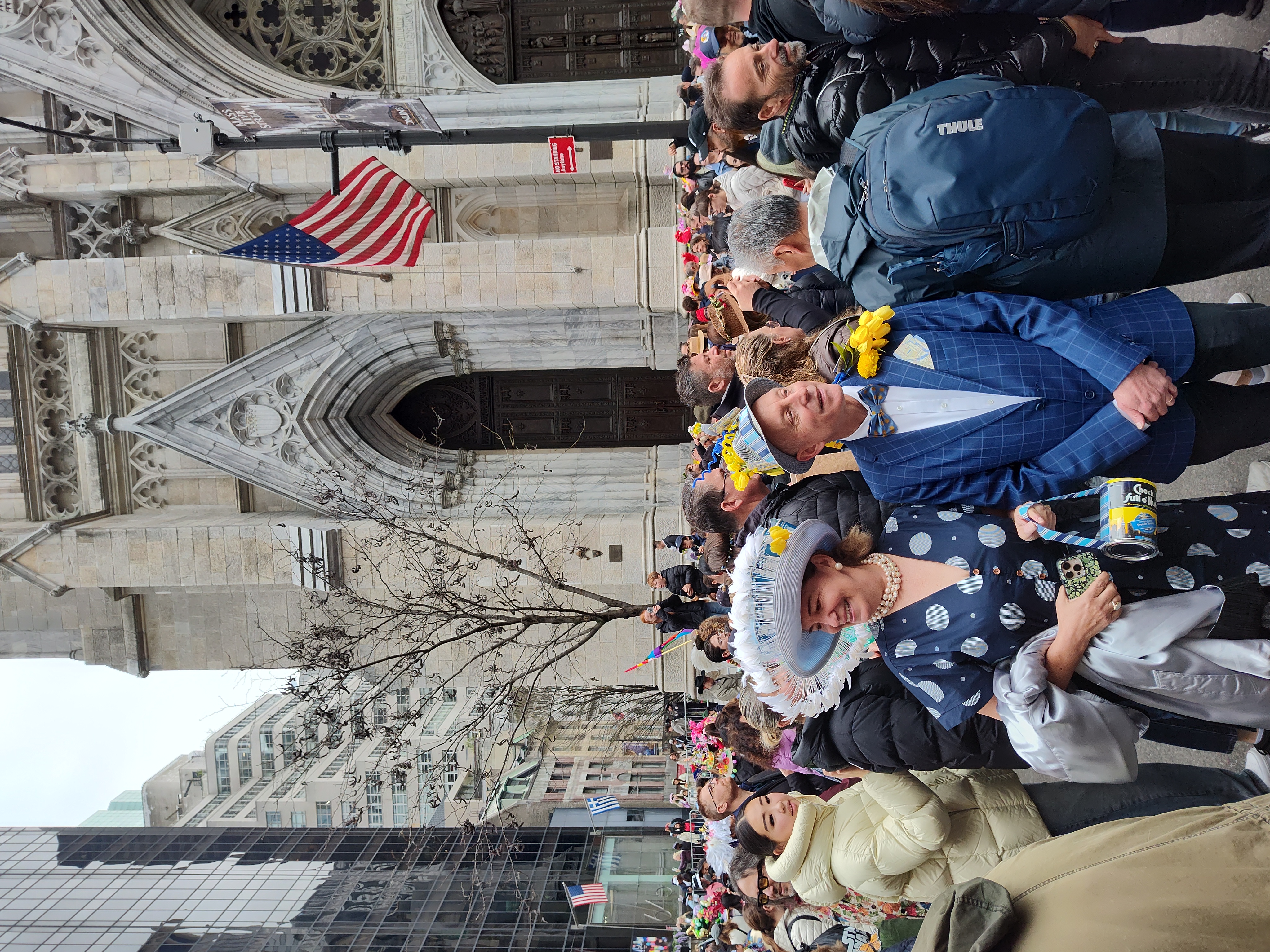 ニューヨークの4月といえば、やはりイースター(復活祭)でしょう。イエス・キリストの復活を祝う子のお祝日は、キリスト教徒の間ではクリスマスに匹敵するといっても過言ではない、重要な祝日です。正確には春分の日の次の満月の後の日曜日ということなので、月の満ち欠けによっては3月の間にやってくることもあるのですが、ほとんどの場合は4月前半の日曜日になることが多いですね。イースターがくれば、北国のニューヨークにもようやく遅い春が訪れるという感があるのですが、今年は春が遠く、その後も残念ながら冬のような寒い日々がかなりの期間続きました。さてイースターといえば、花と帽子と卵でしょう。カラフルな色を塗った卵を子供たちが探す、エッグハンティングが有名ですが、もう一つ、イースターパレードも外すことはできません。パレードと言っても特に列をなして歩くわけではなく、皆が花をあしらった派手な帽子をかぶって、5番街は50丁目と51丁目の間にあるセント・パトリック大聖堂あたりでたむろするだけという、非常に単純ながら楽しいイベントです。今年のイースターは4月の5日、当日は雨の予報が出ていたのですが、朝一番に見に行ったらかろうじてお天気は持ちこたえてくれました。毎年、よくこれだけ色々と工夫を凝らした帽子を作るものだと、いつも感心して見ているのですが、あいにくの肌寒い天気の中にもかかわらず、多くの人が思い思いの帽子をかぶって参加していました。